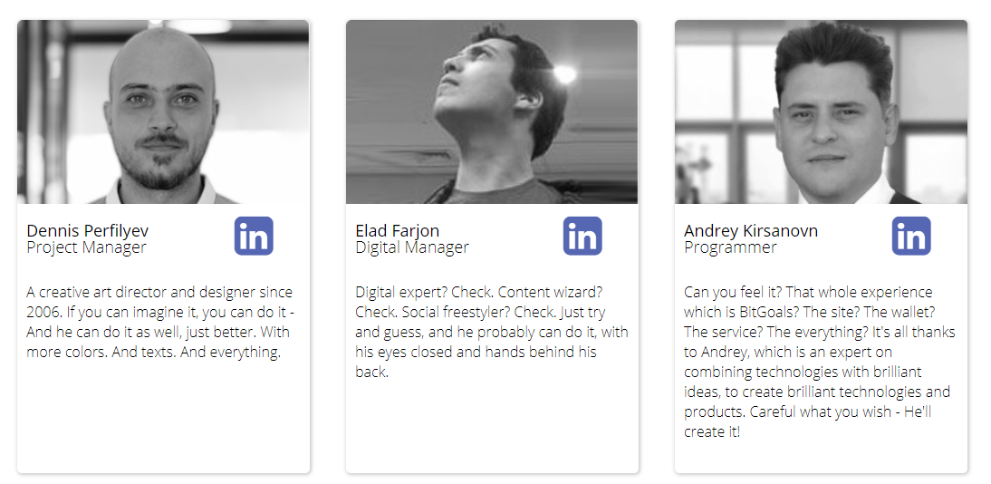 BitGoals - это комбинация валюты Crypto с определенной целью в соответствии с технологией blockchain, будь то в долгосрочном спорте или просто достижении особой цели. Цель состоит в том, чтобы изменить мир спорта и создать новую квартиру. Проект Foundation был основан Беном Харрисом и Йогевым Галом, который решил сделать это после многих лет бизнеса, https: //bitgoals.com/