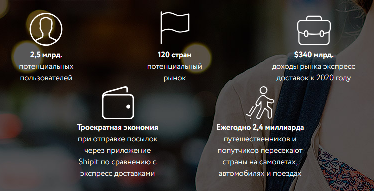 Shipit - это сообщество вещателей и путешественников, объединенных мобильным приложением, которое помогает бывшим пакетам кораблей и зарабатывает последние дополнительные деньги во время путешествия. Shipit - это симбиоз лучших идей и практик курьерских, краудсорсинговых и crowhipping услуг. Мы создали лучшие деловые практики для создания революционного и уникального сервиса. Подобно тому, как Uber и BlaBlaCar уже стали частью нашей повседневной жизни, Shipit станет незаменимым инструментом для доставки. Это первое приложение такого рода, которое будет использовать Smart Contracts и Blockchain в качестве собственного инструмента, облегчающего жизнь людям во всем мире. Внедряя токены shipit и используя блок-цепочку, мы хотим строить отношения между пользователями на основе видимости, безопасности и простого отслеживания для всех поставок на платформе. По мере того как курьерские услуги становятся более дорогими, Shipit позволяет пользователям отправлять и отслеживать открытые пакеты по сниженным ценам и рискам. Доставка никогда не была проще.